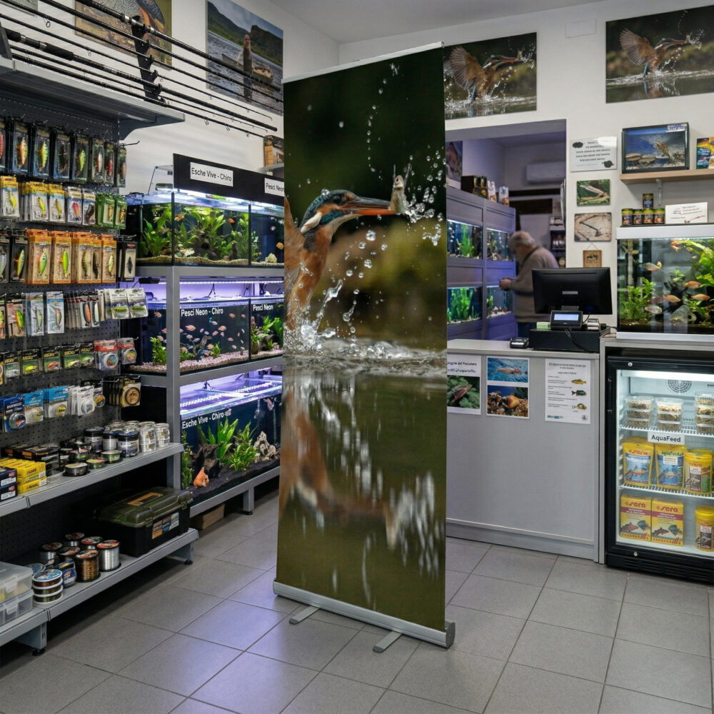 Con la versione Giant dello sperimentatissimo Roll Up Wildcat un fondale di cm 85/100×300. Ancora più robusto.